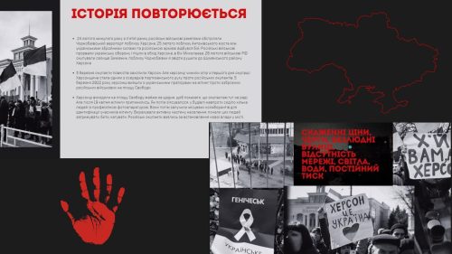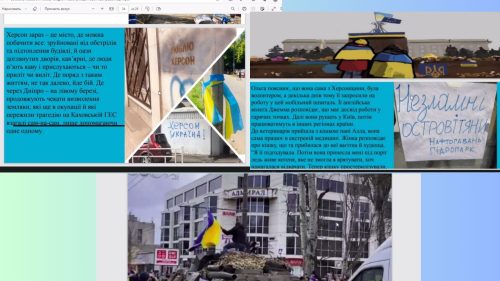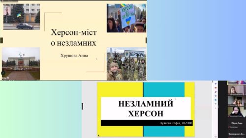 У межах проєкту “Херсон – місто незламних” за ініціативою вчительки історії Ольги Михайлик відбулася зустріч ліцеїстів і ліцеїсток 10 МПН класу з учнями й ученицями 11 ПМВ, на якій діти презентували свої спогади, авторські фото подій окупації та звільнення нашого міста від ворогів.