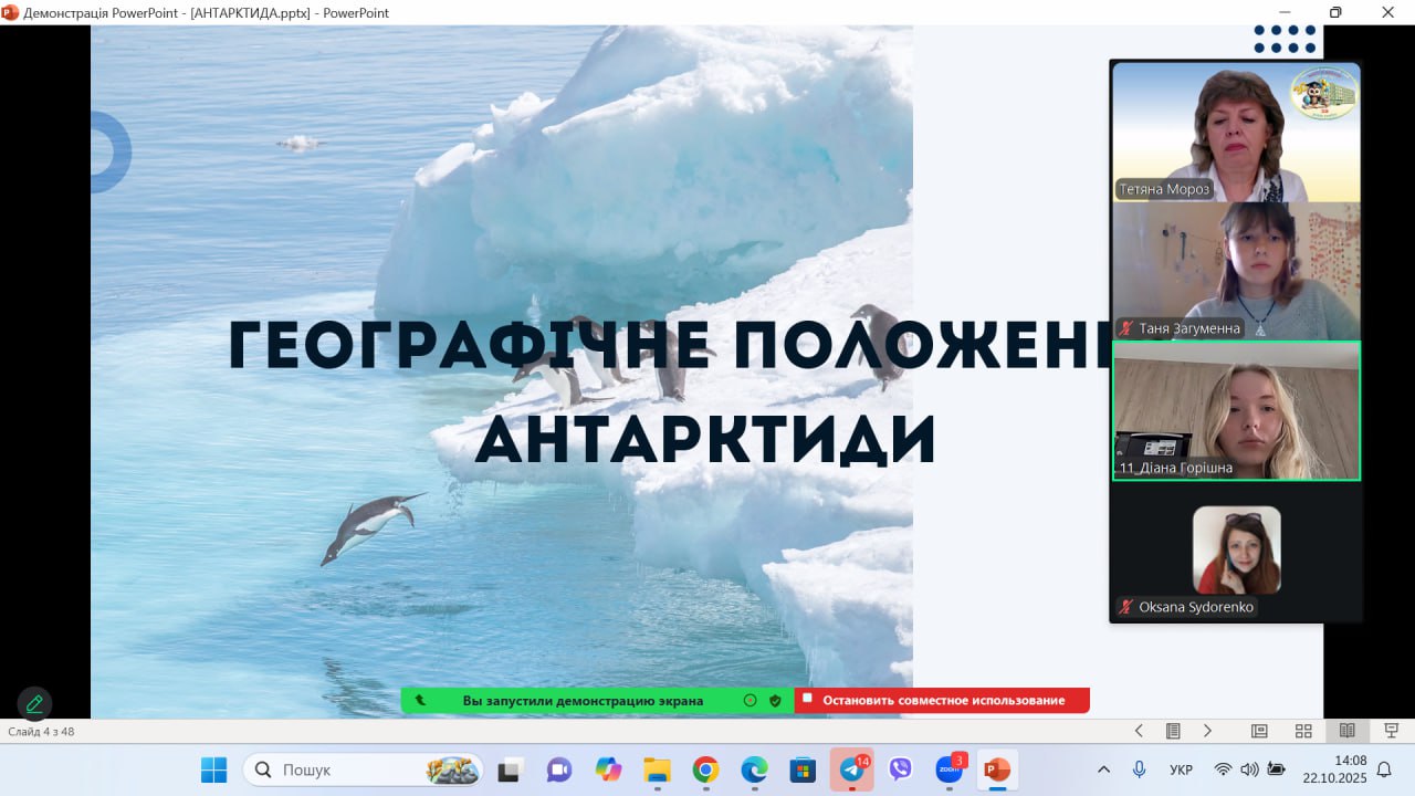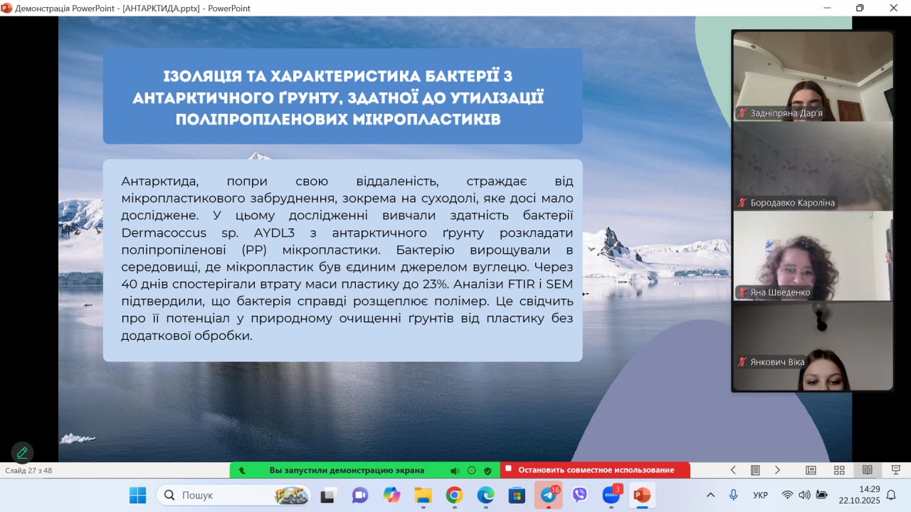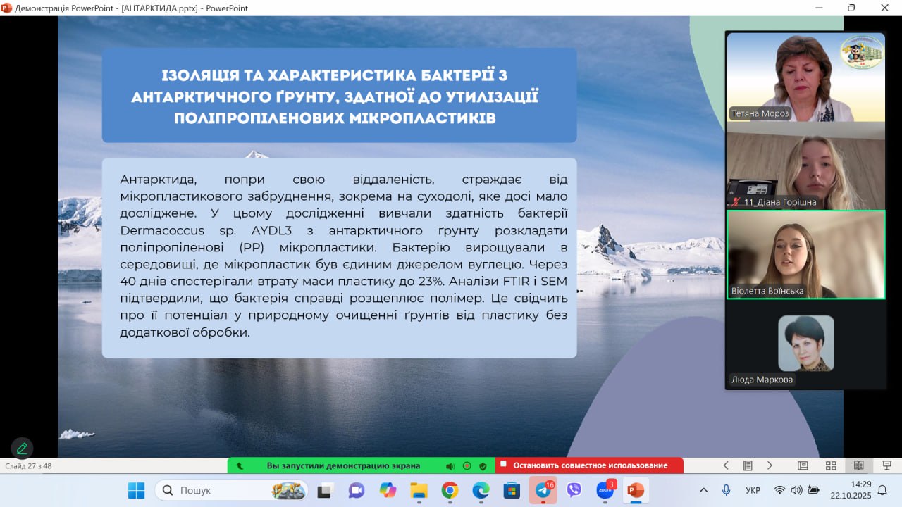 22 жовтня 2025 року ліцеїсти 11МПН підготували та провели нову сторінку освітньо-дослідницького проєкту «Антарктичний щоденник»!