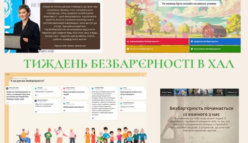 За цей час класні керівнички встигли обговорити з учнями та ученицями основні принципи безбар’єрності в освіті й суспільному просторі, а вчителі-предметники заохотили дітей до створення інформаційних презентацій, участі в інтерактивних опитуваннях і вікторинах. Так, у всіх класах пройшли години спілкування та зустрічі з психологом ліцею А. Широковим. Учителька інформатики Д. Кучинська провела цікавий кахут для ліцеїстів і ліцеїсток, а на уроках історії з О. Михайлик та Т. Лебідь діти представили свої роботи з теми безбар’єрності. Протягом тижня в телеграм-каналі можна було ознайомитися зі словничком безбар’єрності та навчитися бути толерантним під час комунікації.