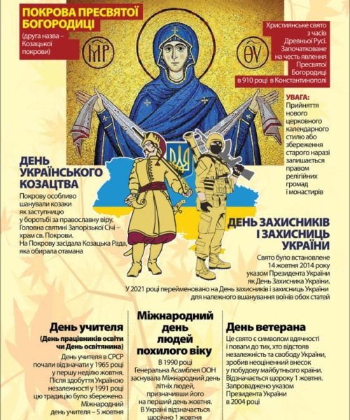 Жовтень – особливий для України місяць, адже розпочинається він із надзвичайно важливого свята – Покрови, Дня українського козацтва та Дня захисників і захисниць України. Ця дата в календарі об’єднує всі покоління, які упродовж віків виборювали […]