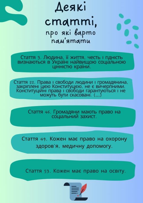 Учні й учениці Херсонського академічного ліцею імені О.В.Мішукова ХМР при ХДУ в цей день не лише ознайомилися з інформаційними матеріалами про Конституцію України, але й мали змогу перевірити свої знання та взяти участь у вікторині “Чи добре ти знаєш Конституцію?”