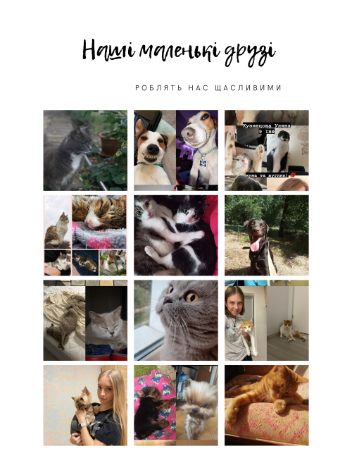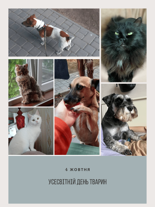У світі, мабуть, немає людей, які б не любили послухати муркотіння котика, кинути м’ячика кумедному песику, подивитися, як плавають черепашки, чи помилуватися граційним гепардом. Тварини, а особливо наші домашні улюбленці, розважають, заспокоюють і дарують безліч інших позитивних емоцій! Тому сьогодні, у Всесвітній день тварин, ліцеїсти та педагоги вирішили поділитися світлинами своїх пухнастиків та познайомити з ними всіх охочих.