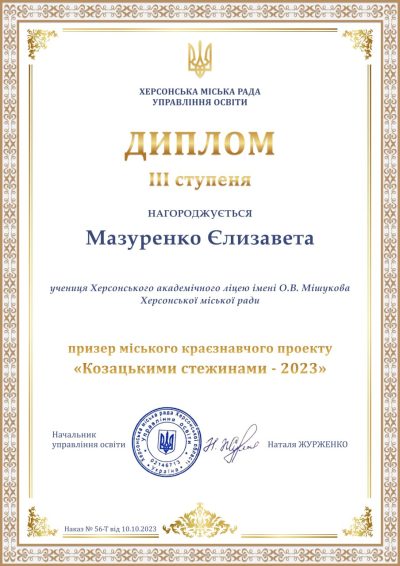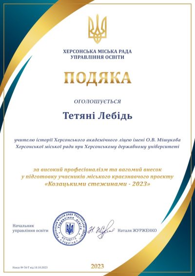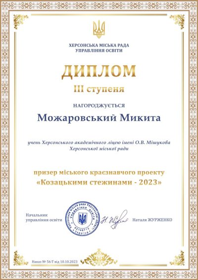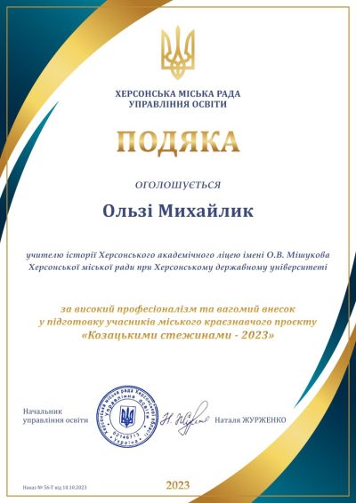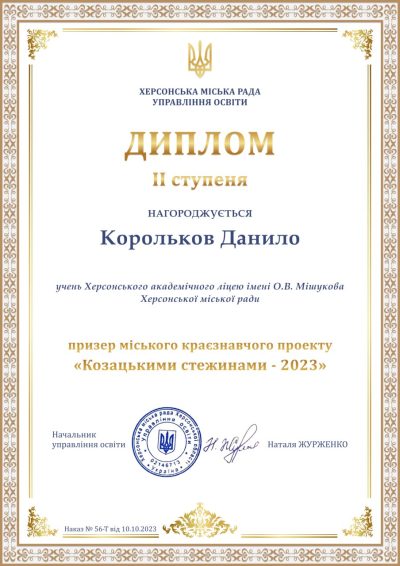 Сьогодні вітаємо призерів міського краєзнавчого проєкту “Козацькими стежинами – 2023”!