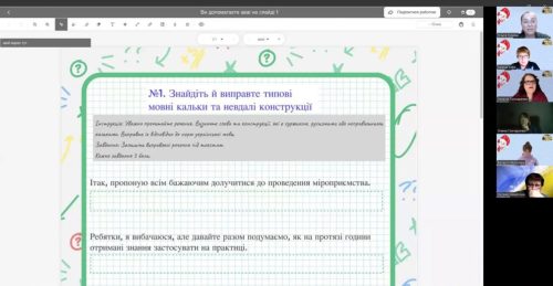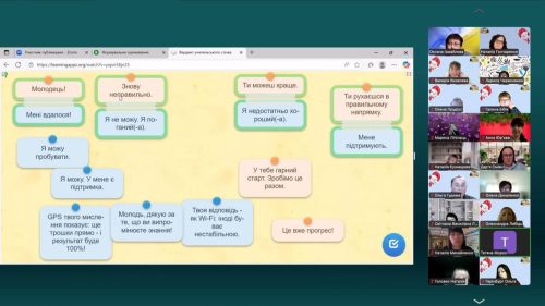 У виступі заступниці директорки ліцею Гончаренко Наталії були висвітлені результати спостереження за уроками, визначені напрями, що потребують удосконалення (парно-групові форми роботи та академічна доброчесність), а також представлено практичні підходи до організації взаємооцінювання в умовах дистанційного навчання із використанням сервісу Classkick.