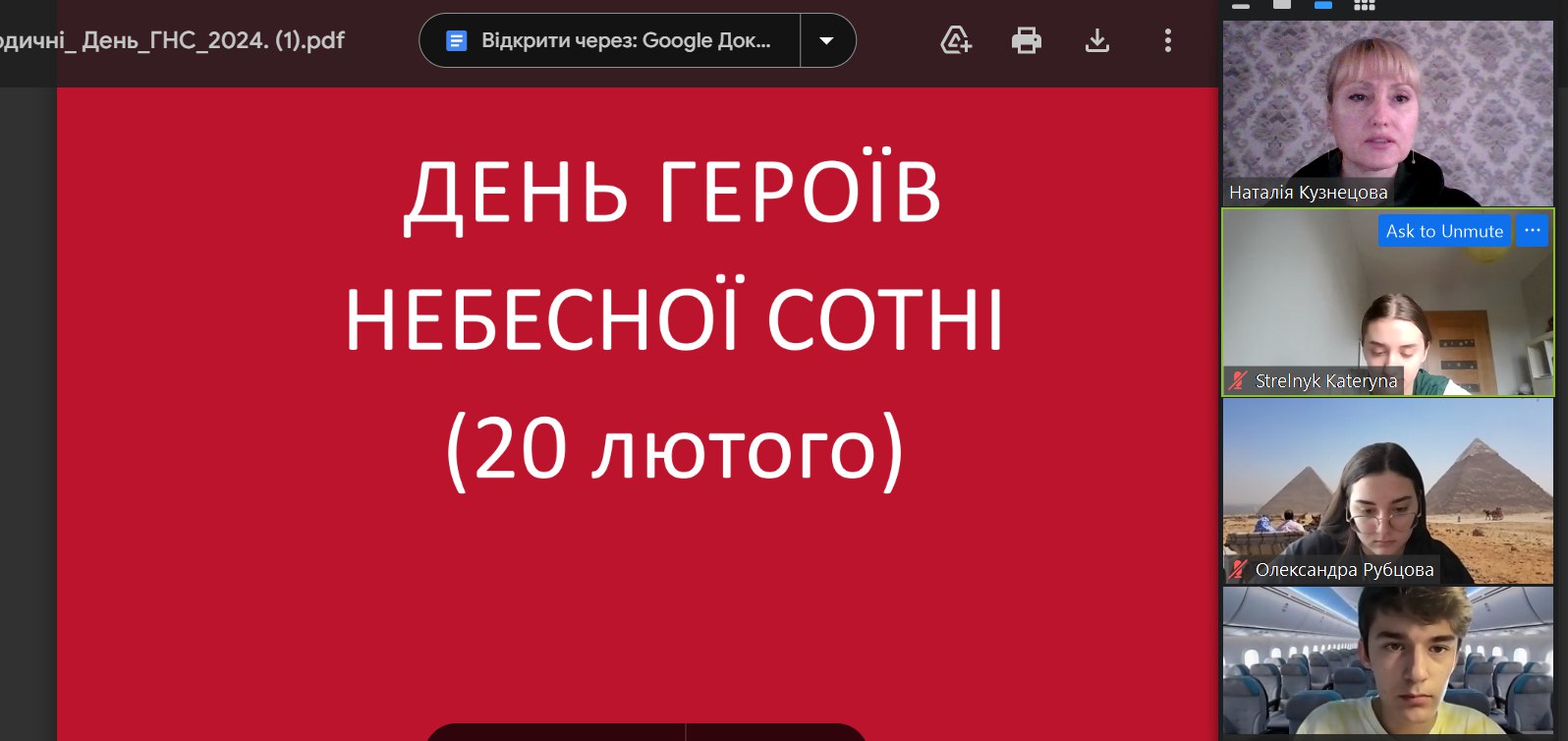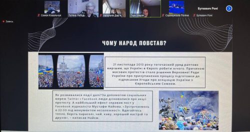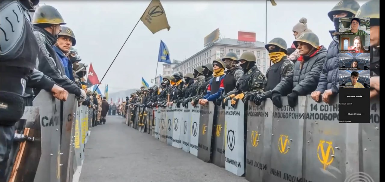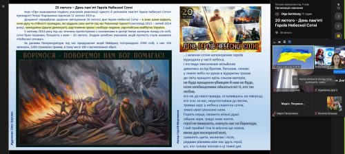Сьогодні в ліцеї класні керівники та вчителі-предметники організували години спілкування та інформаційні хвилини, присвячені Небесній Сотні. У 10 ЖМВ, 10 ІНФ та 9 ЖМВ народна вчителька України Тетяна Лебідь провела уроки пам’яті, де учні й учениці представили свої презентації до цієї дати. У 9 МПН учителька історії Ольга Герінбург також говорила з дітьми про події 2013-2014 років та створила особливе відео за проєктом Юрія Журавля “Знай наших”, переглядаючи яке всі охочі могли отримати мотиваційну цитату. А ліцеїсти 11 ІНФ класу на уроці історії разом із Ольгою Михайлик розглядали історію в розвитку – “Від “Революції на граніті” до Революції гідності. Неперервний шлях України”.