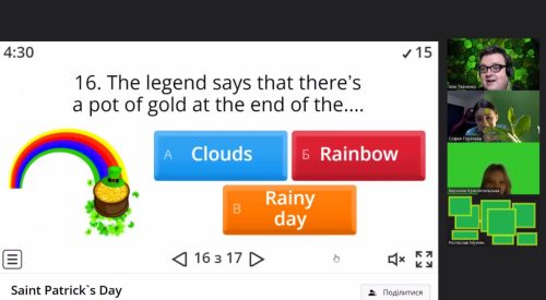 Цей день відомий своїми традиціями, як-от: вдягання зеленого одягу та використання символів, що асоціюються з Ірландією (трилисник чи лепрекон). Уроки англійської мови в 9 та 10 класах можуть стати чудовою нагодою для вивчення ірландських традицій та фраз, пов’язаних із цим святом. А використання різноманітних мультимедійних ресурсів, пісень, відео та текстів, залучає учнів нашого ліцею до активного пізнання 💚☘️🇮🇪
