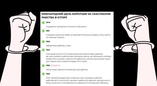 Щороку 2 грудня, відповідно до рішення Генеральної асамблеї ООН, світ відзначає Міжнародний день боротьби за скасування рабства.