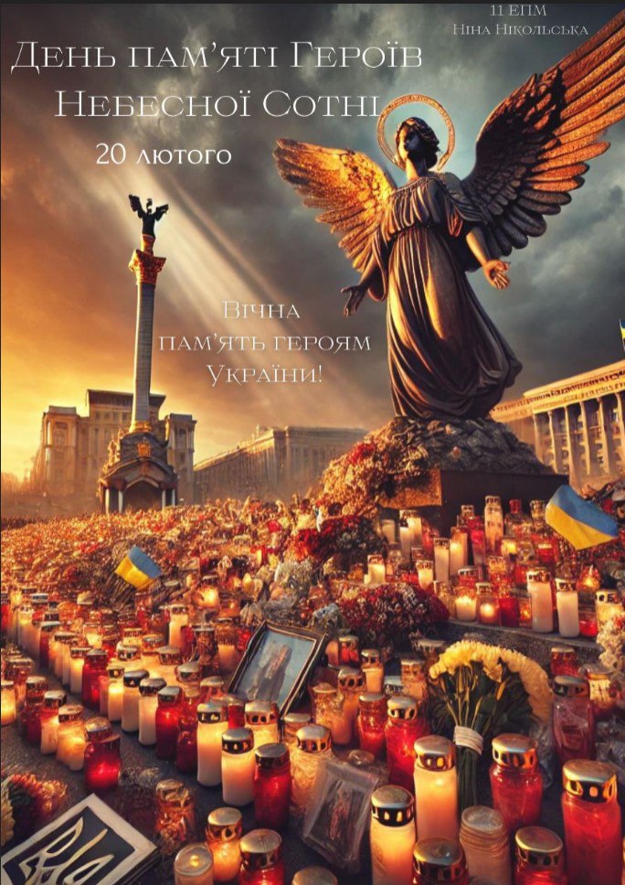 20 лютого 2025 року минає 11 років від дня масових розстрілів Небесної Сотні на Майдані. Крім того, це 11 років від початку російської агресії. Адже саме тоді, коли на вулиці Інститутській у Києві гинули беззбройні протестувальники, російська федерація розпочала воєнну агресію, анексувавши АР Крим, а згодом окупувавши частину Луганської та Донецької областей. Одними з перших, хторішуче виступив на захист нашої Батьківщини, були представники Небесної Сотні. «Небесна Сотня» – це прийнята в Україні збірна назва загиблих протестувальників Євромайдану (Революції Гідності) у грудні 2013 – лютому 2014 року.