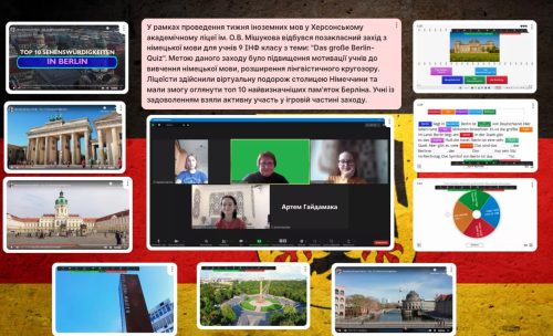 У рамках проведення тижня іноземних мов у Херсонському академічному ліцеї імені О.В. Мішукова відбувся позакласний захід з німецької мови для учнів 9 ІНФ класу з теми: “Das große Berlin- Quiz”, проведений О. Ізмайловою.