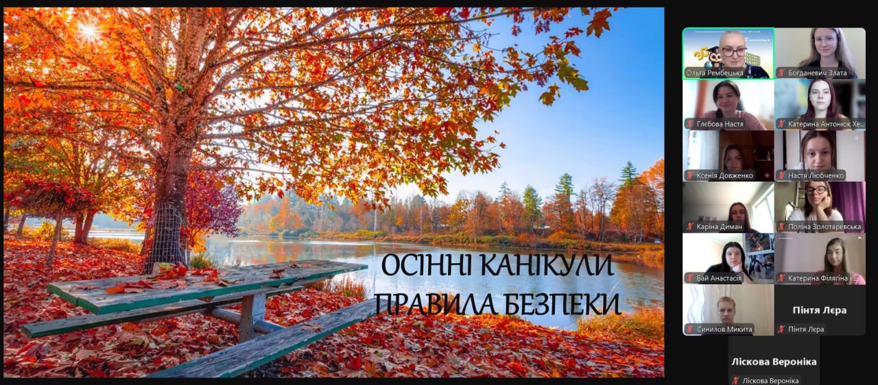 Із 28 жовтня по 03 листопада в Херсонському академічному ліцеї імені О.В. Мішукова триватимуть осінні канікули. Напередодні в усіх класах пройшли інструктажі з техніки безпеки, під час яких класні керівники нагадали про правила дорожнього руху, алгоритми дій під час повітряної тривоги, профілактику застудних захворювань тощо.