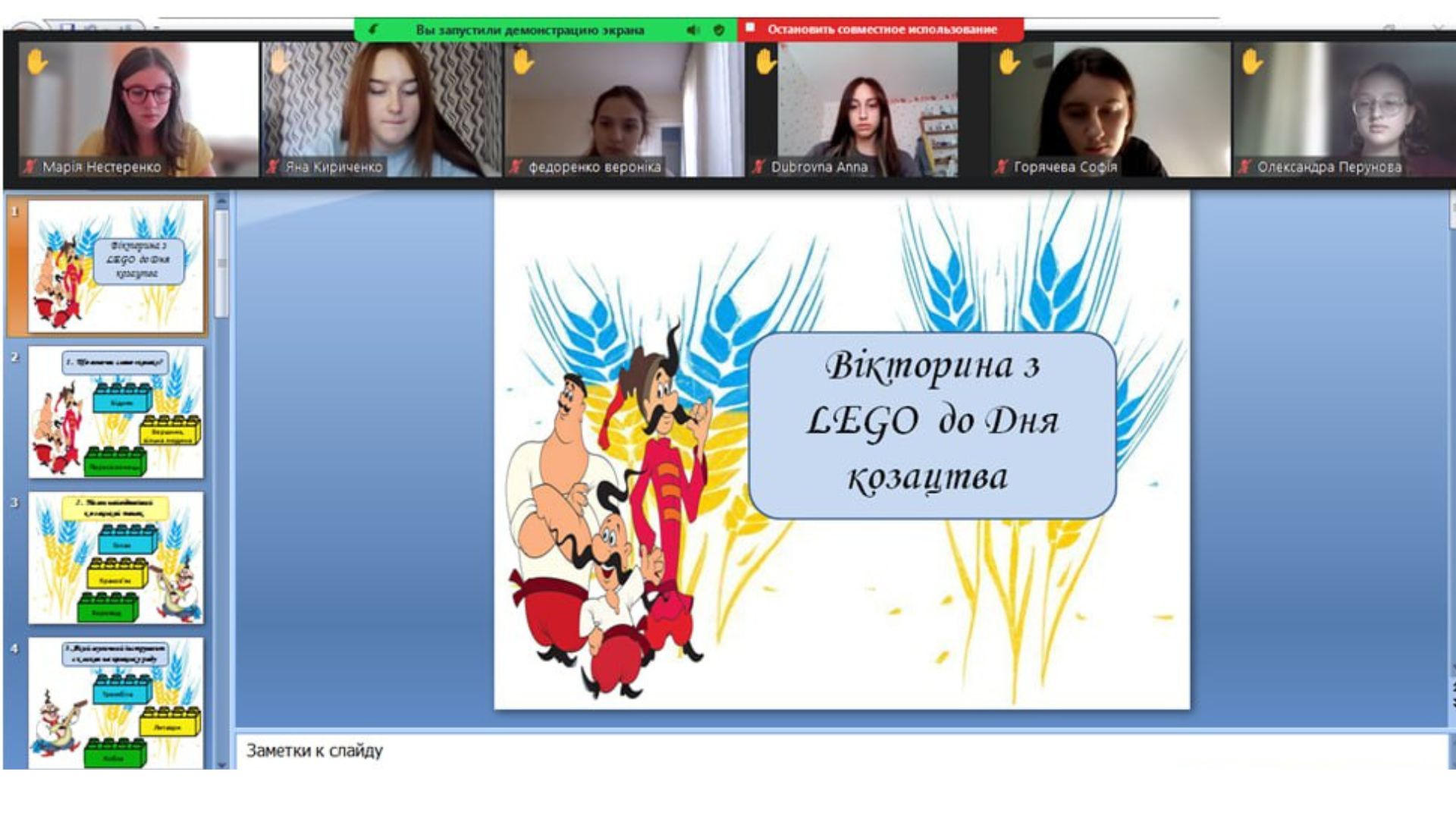 05 жовтня відбувся виховний захід “Нація нескорених: від козацтва до сьогодення” для учнів 9 ЖМВ класу під керівництвом Народної вчительки Т. Лебідь. Ліцеїсти у своїх виступах і представлені мініпрезентацій продемонстрували усвідомлення єдності українців як нації у виборюванні своїх прав і свобод; висловили велику шану й повагу до воїнів-захисників України, віру в перемогу нашого народу над російським агресором.