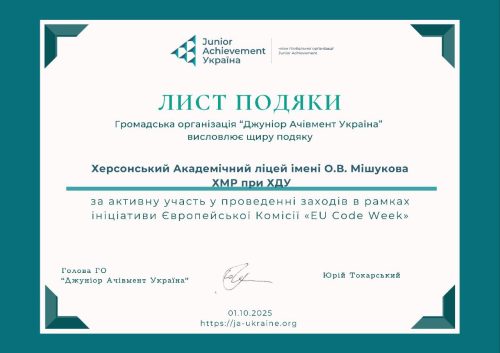 Дякуємо Олександрі за активність і цікаві ідеї, а вчительці інформатики Діні Кучинській – за якісну підготовку й підтримку ініціатив ліцеїстів і ліцеїсток!