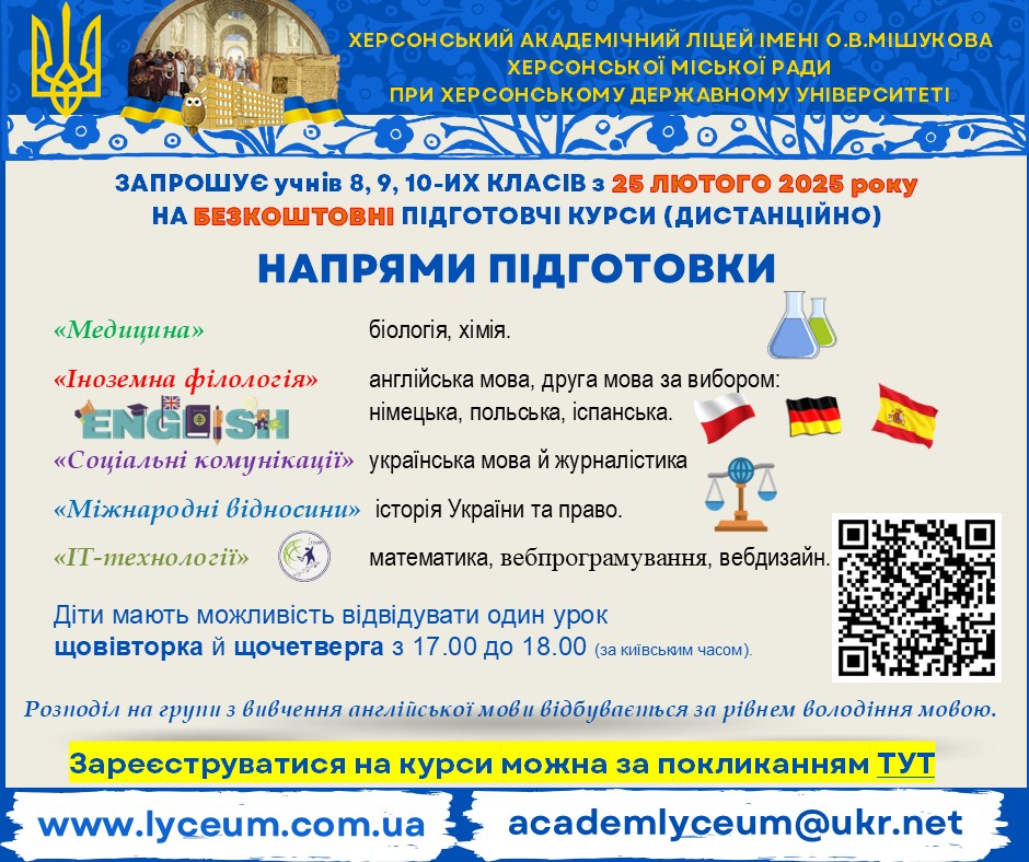 Запрошуємо учнів 8, 9, 10-их класів на БЕЗКОШТОВНІ підготовчі курси