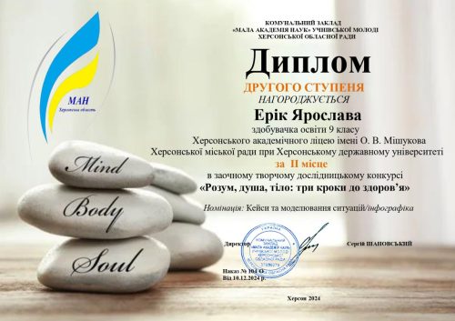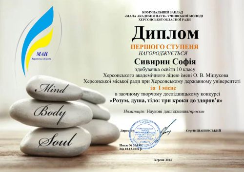 Комунальний заклад «Мала академія наук» учнівської молоді Херсонської обласної ради провів дослідницький конкурс «Розум, душа, тіло: три кроки до здоров’я»! 🌟
